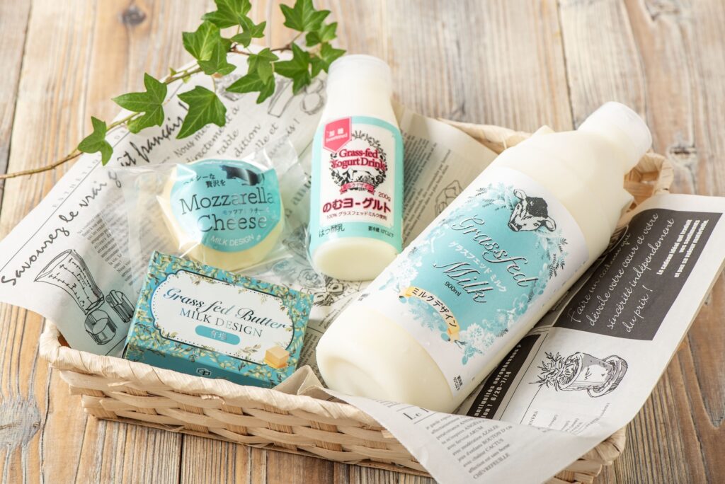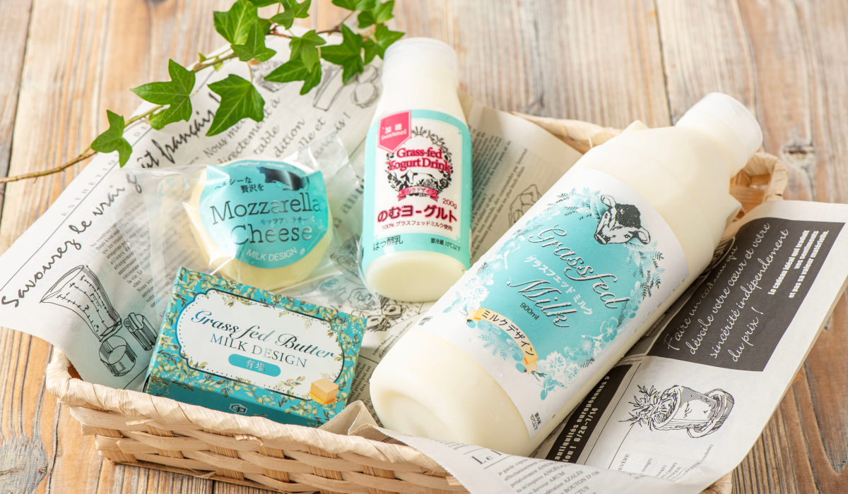 【おためし乳製品セット】グラスフェッドをまずは試してみたいというお客様へ、牛乳・飲むヨーグルト・チーズ・有塩バターのおトクなお試しセットです。
